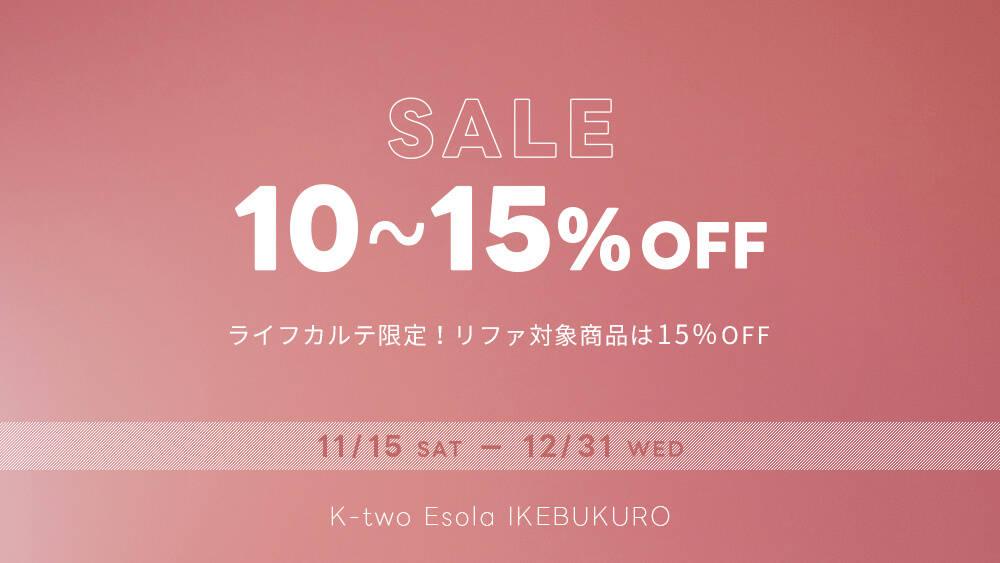 【K-two 池袋】店内全商品10%~15%OFF/ライフカルテ限定でReFa(リファ)対象商品は15%OFFに♪