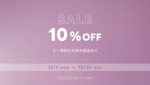 いつもCORSO by k-two 西宮ガーデンズ店をご利用いただきまして誠にありがとうございます。 CORSO by k-two 西宮ガーデンズ店は年末年始も休まず営業いたします。年内最終営業日と年始営業開始日は営業時 […]