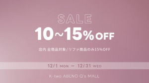 いつもK-twoあべのキューズモール店をご利用いただきまして誠にありがとうございます。 K-twoあべのキューズモール店の年末年始の営業日および休業日についてお知らせいたします。 年内最終営業日 2025年12月31日( […]