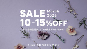 こんにちは!K-twoあべのキューズモール店です。 K-twoあべのキューズモール店では、2026年3月1日(日)~3月31日(火)の期間、全商品10%OFFキャンペーンを実施します♪ また、取り扱いがあるReFa(リフ […]