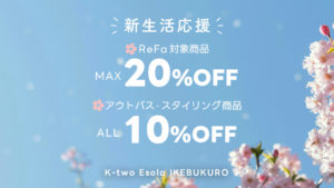 こんにちは!K-two Esola IKEBUKURO店です。 K-two Esola IKEBUKURO店では、2026年3月1日(日)~3月31日(火)の期間、ReFa(リファ)対象商品が最大20%OFFに!また、ア […]