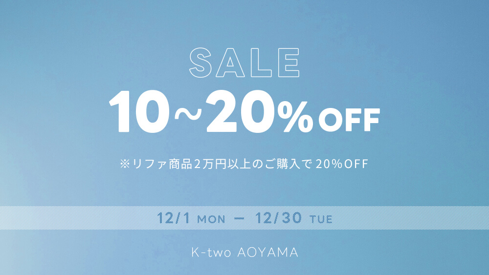 K-two AOYAMA店では、2025年12月1日(月)~12月30日(火)の期間、全商品10%OFFキャンペーンを実施します♪