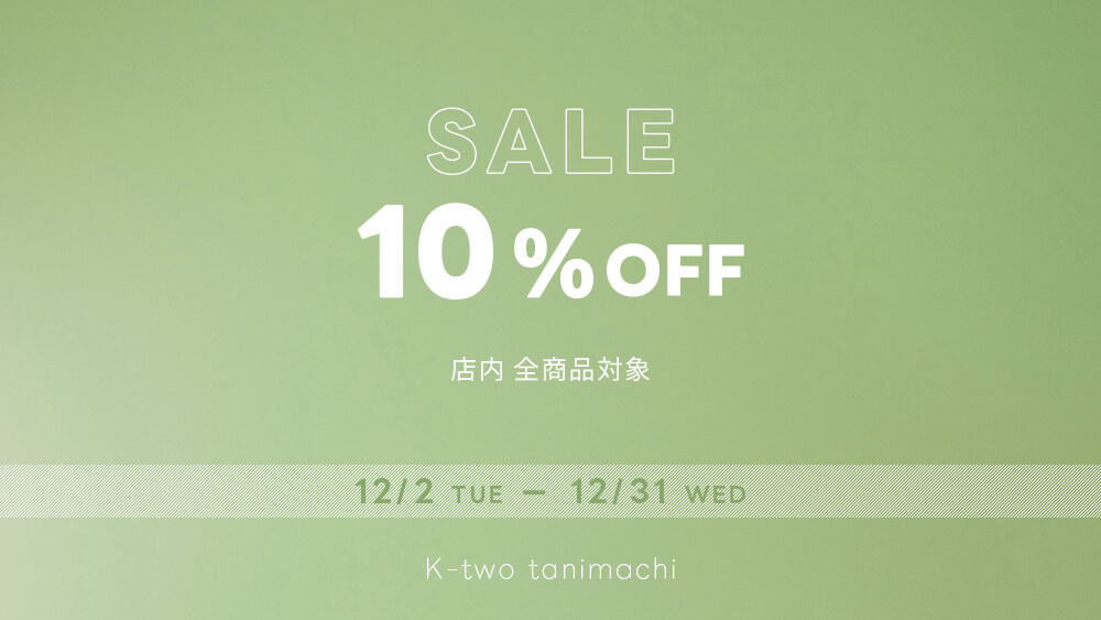 K-two tanimachi店では、2025年12月2日(火)~12月31日(水)の期間、全商品10%OFFキャンペーンを実施します♪